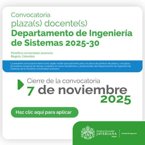 Convocatoria plaza(s) docente(s) Departamento de Ingeniería de Sistemas 2025-30 Pontificia Universidad Javeriana
